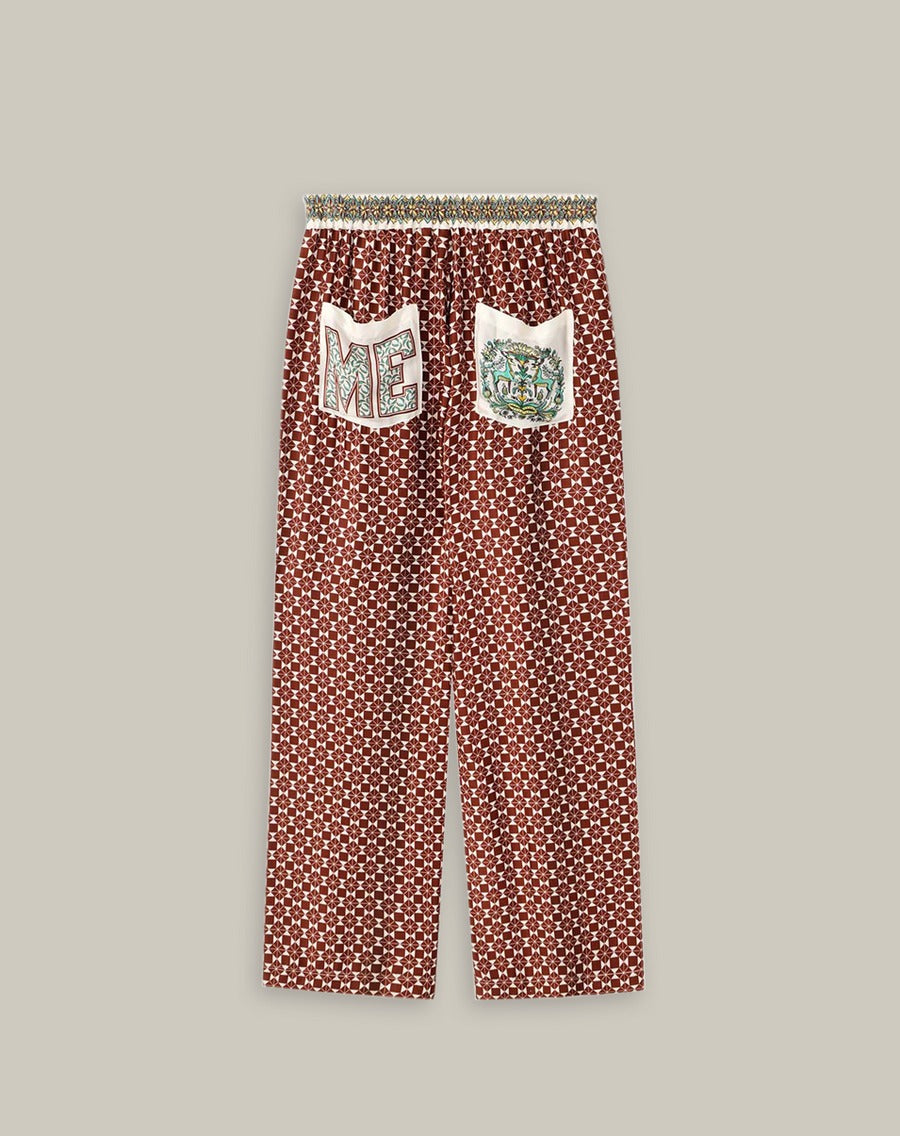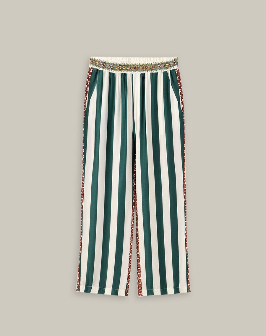 The Bailey Pants in Sporty Jade reimagine loungewear with a bold graphic twist. With a striped front, geometric patterned back, and contrast side seams, they’re designed to turn heads while keeping things effortlessly wearable. Pair them with the Isabel Shirt for a coordinated look.