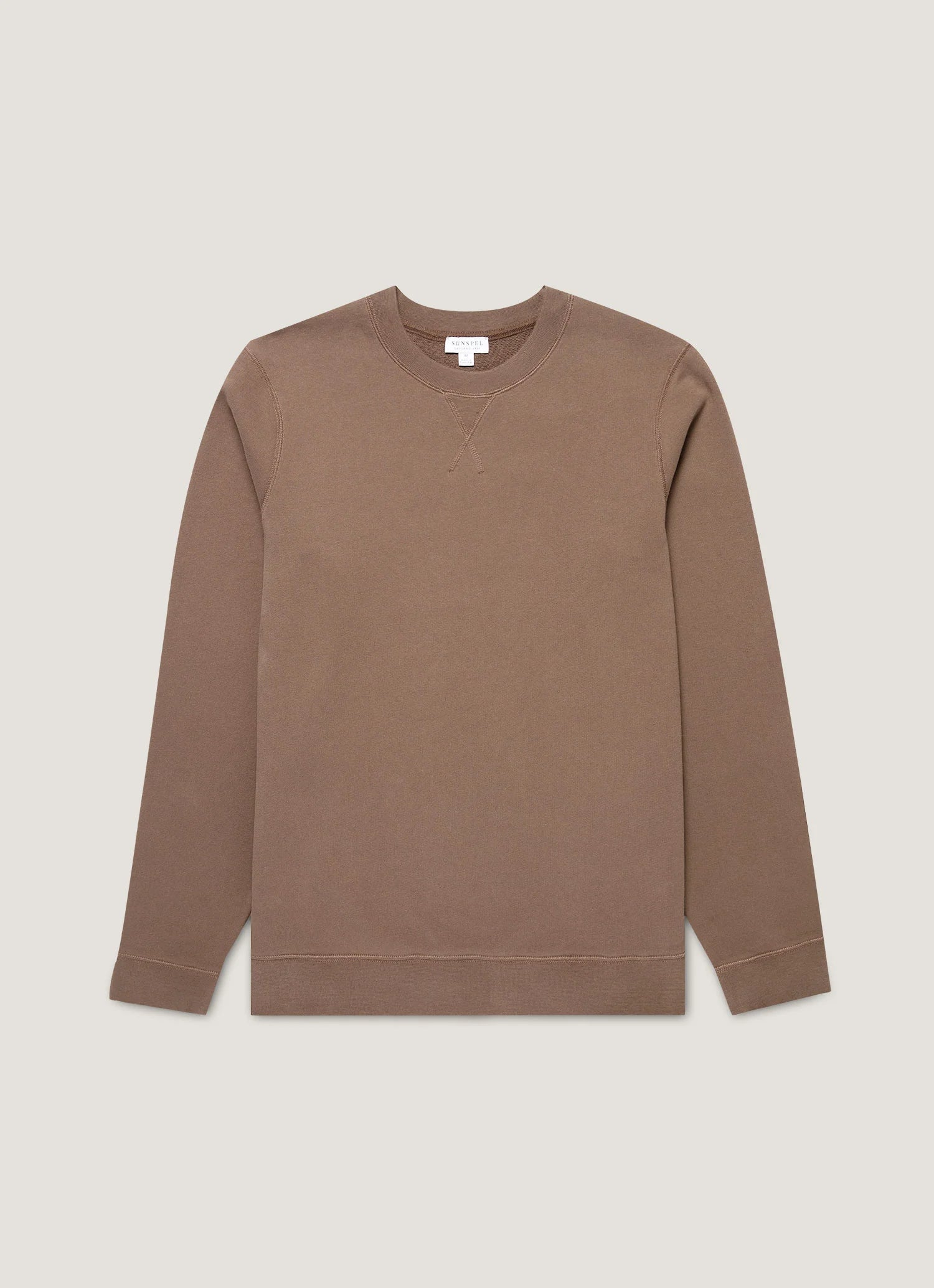 A modern take on the classic athletic sweatshirt, the iconic Sunspel sweatshirt has a neat fit and refined sweatshirt detailing, with its V-stitch insert and rib cuffs. it is made from an exceptionally soft loopback fabric, and its traditional internal loop stitch is warm and insulating. Pair with the matching sweatpants as part of the track set.