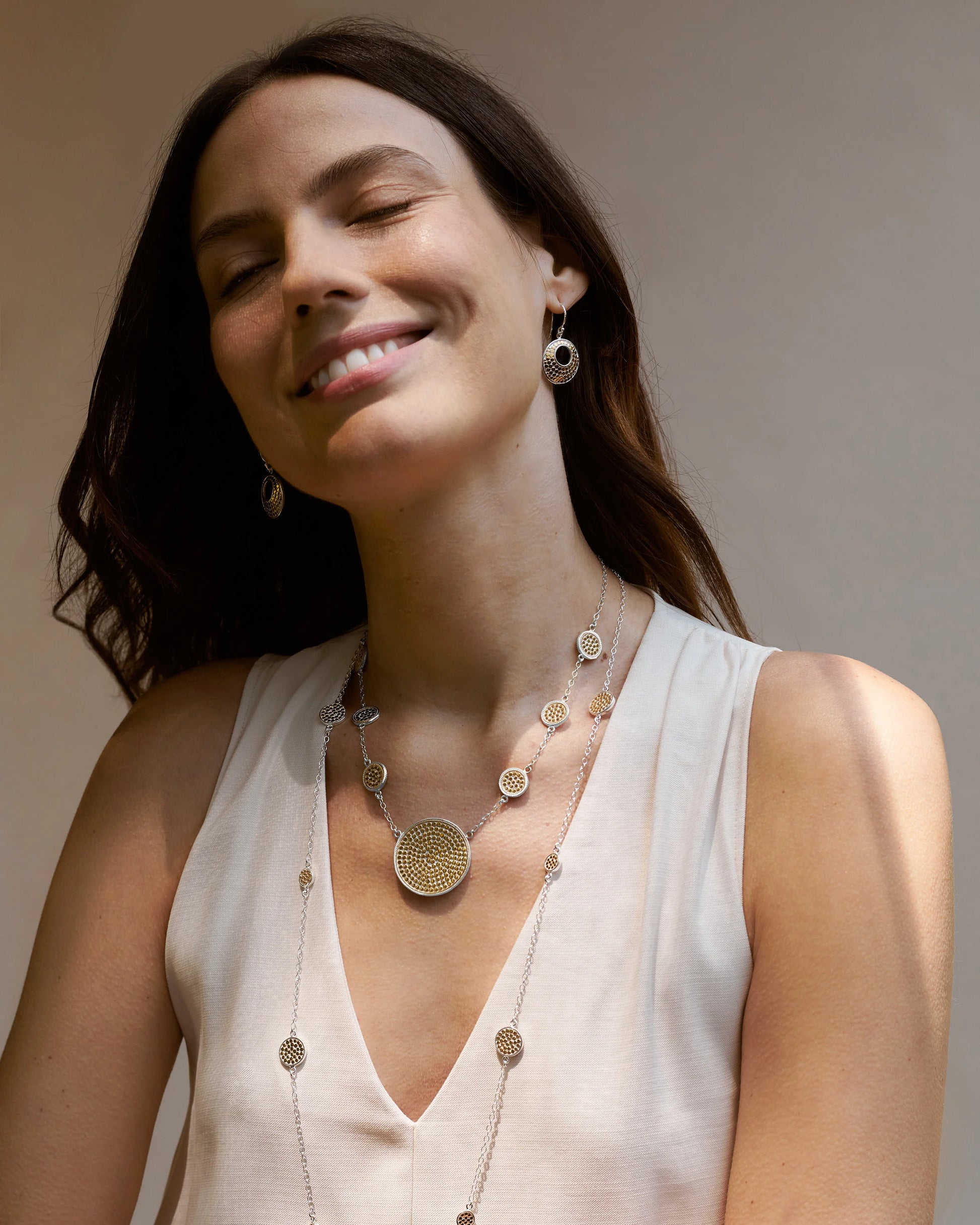 The classic station necklace works so hard in your jewelry collection, delivering texture, movement and interest all in a sleek, minimal package. Perfect in stacks or styled solo. This version features mixed metals—gold and silver—and a longer length.
