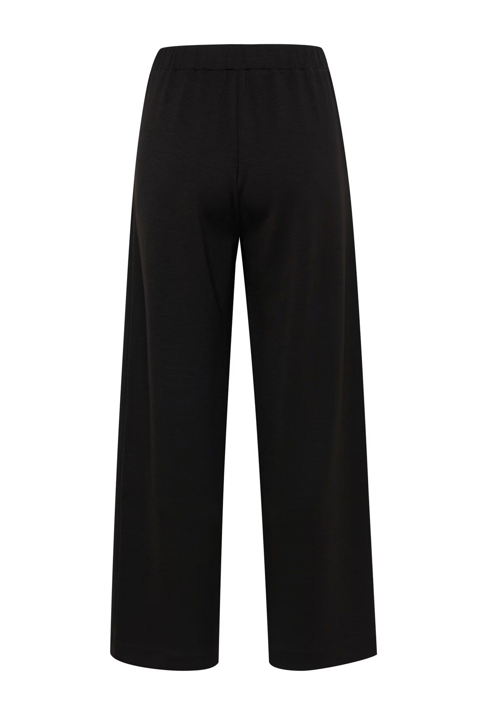 Black pull-on trousers with wide legs and an elasticated waistband. Made from a soft, heavy fabric with a clean and simple look. The model is 176 cm tall and wears size 36/S.