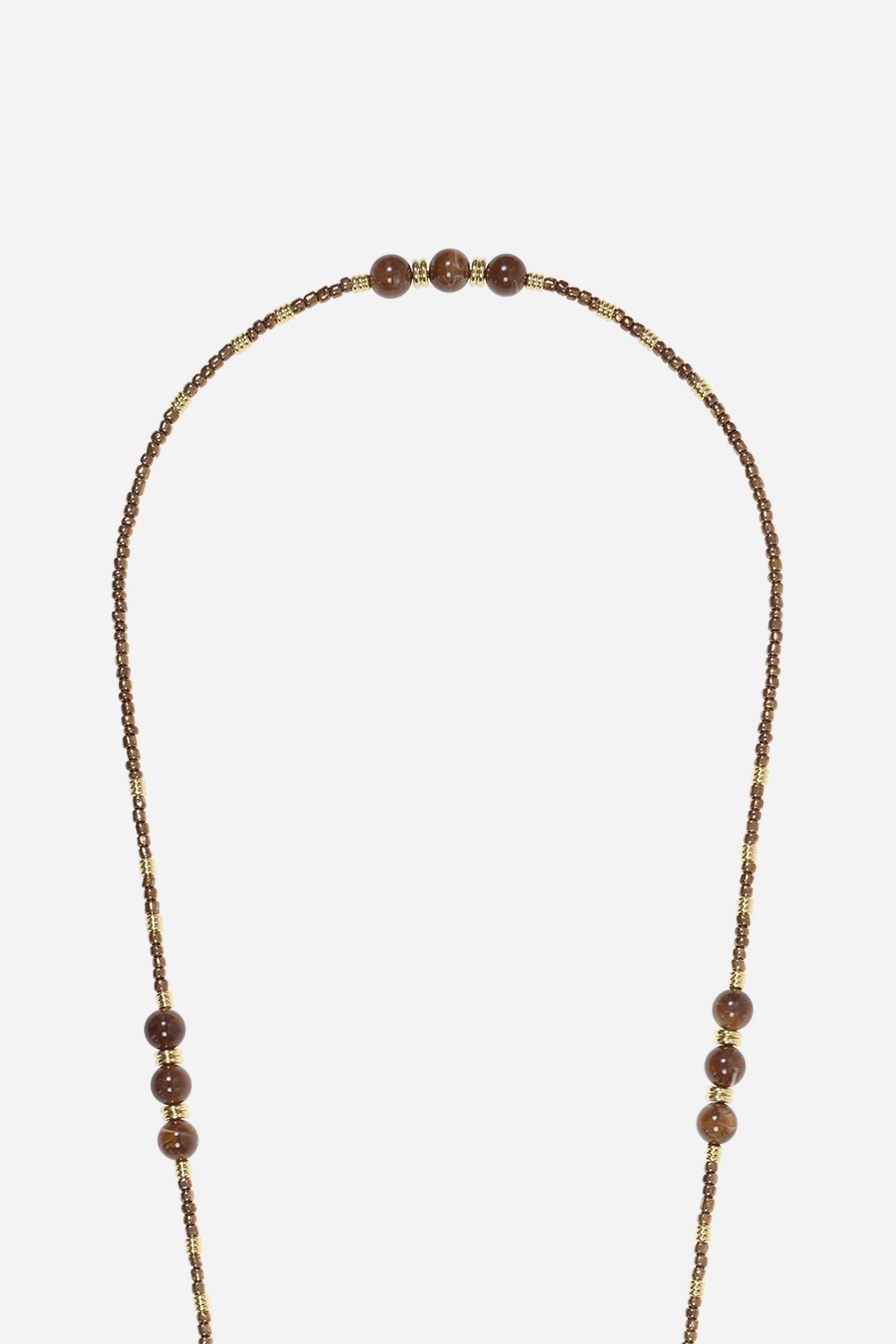 The Iris phone chain, made of bronze beads, is 120 cm long and clips onto LCF ring cases or adapters with its gold-plated carabiners. It was designed in Marseille and handmade.