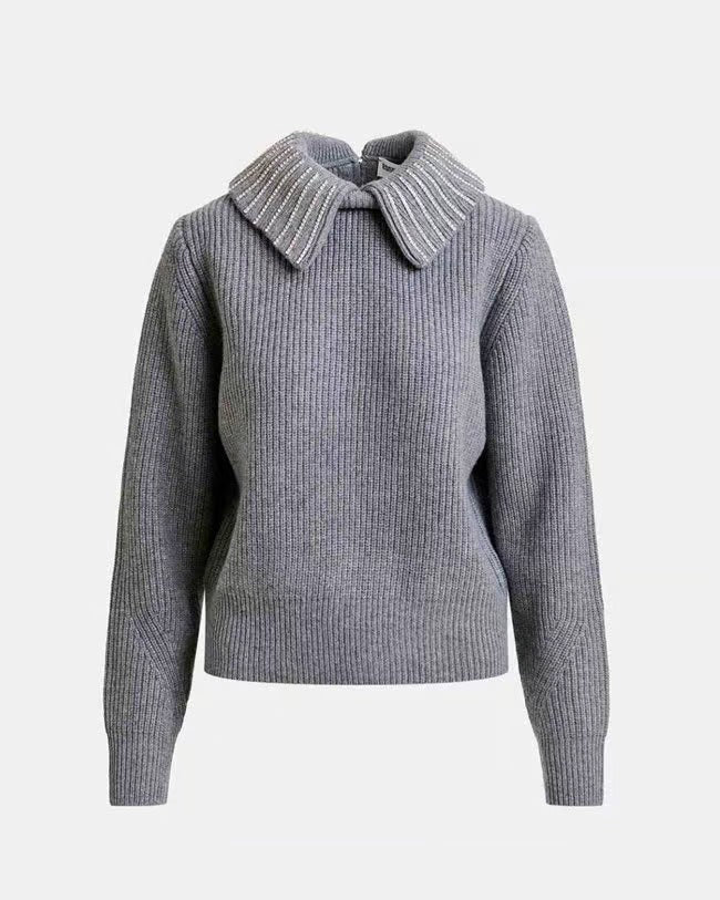 The Jimmer jumper from Essentiel Antwerp is a gorgeous ribbed grey knit with a statement collar. With diamanté design on the collar, and a zip fastening at the back, this is the perfect layer when its cold, still keeping your look modern and refined.