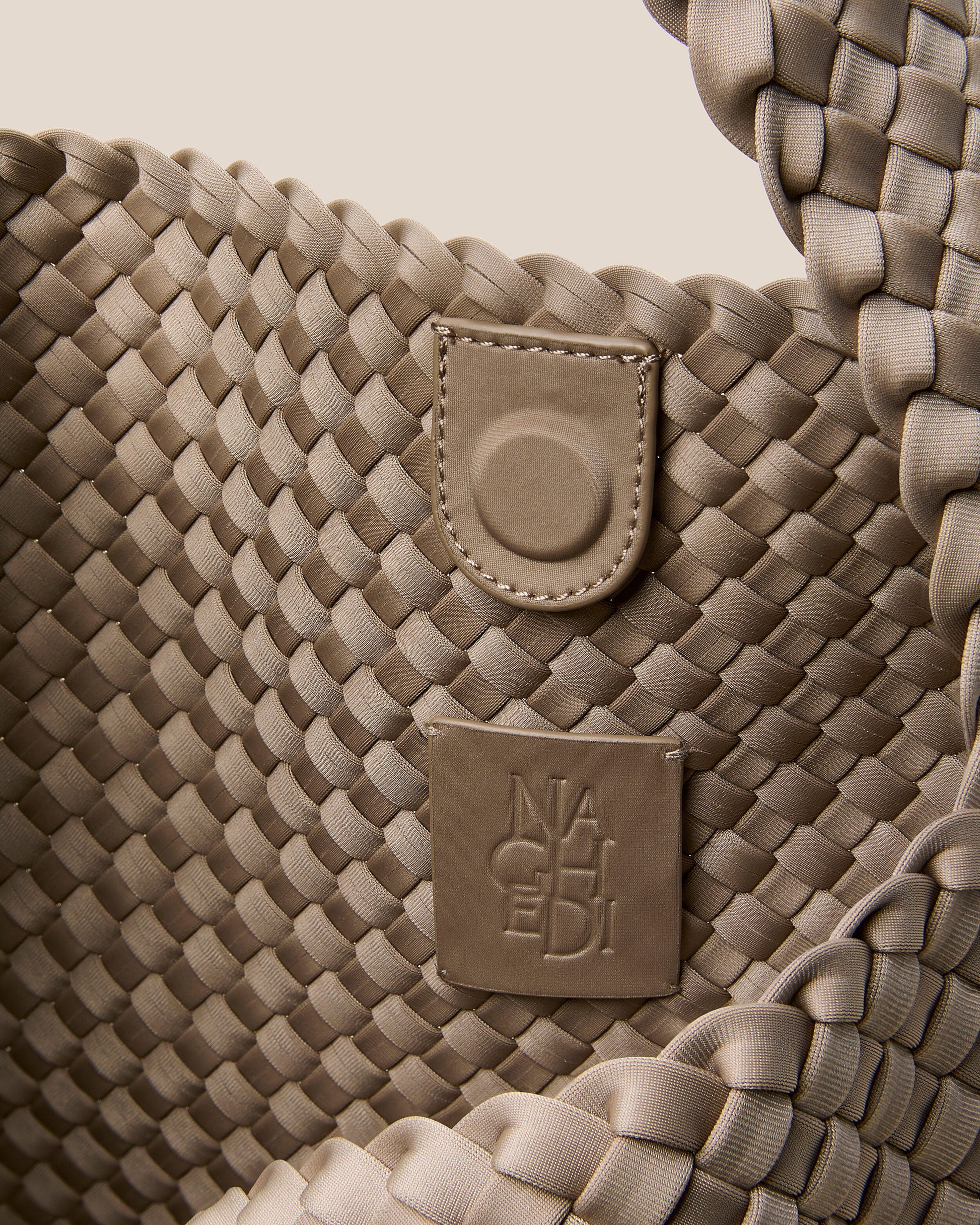 The Nomad Large Hobo in Cashmere captures the essence of ease and elegance. Handwoven from Naghedi’s signature neoprene in a soft taupe tone, it’s lightweight yet spacious - made to move with your day. The wide strap sits comfortably on the shoulder, while the magnetic snap closure and matching zip pouch keep your essentials in check. An elevated everyday bag with just the right amount of structure and slouch.