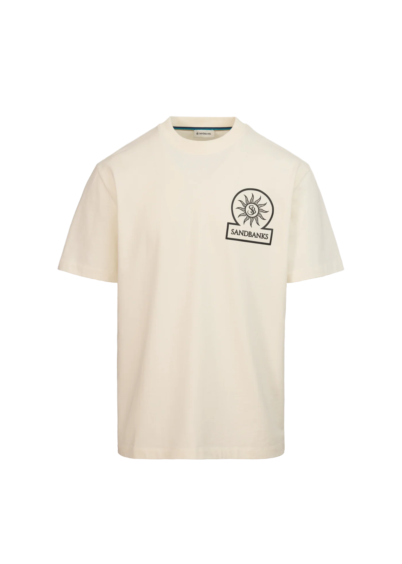 Sandbanks men's double jersey collegiate t-shirt in dusty blue, made from mercerised cotton for a silky and luxurious feel. This relaxed fit crew neck t-shirt features an embroidered badge logo on the chest and tri-colour back neck binding.