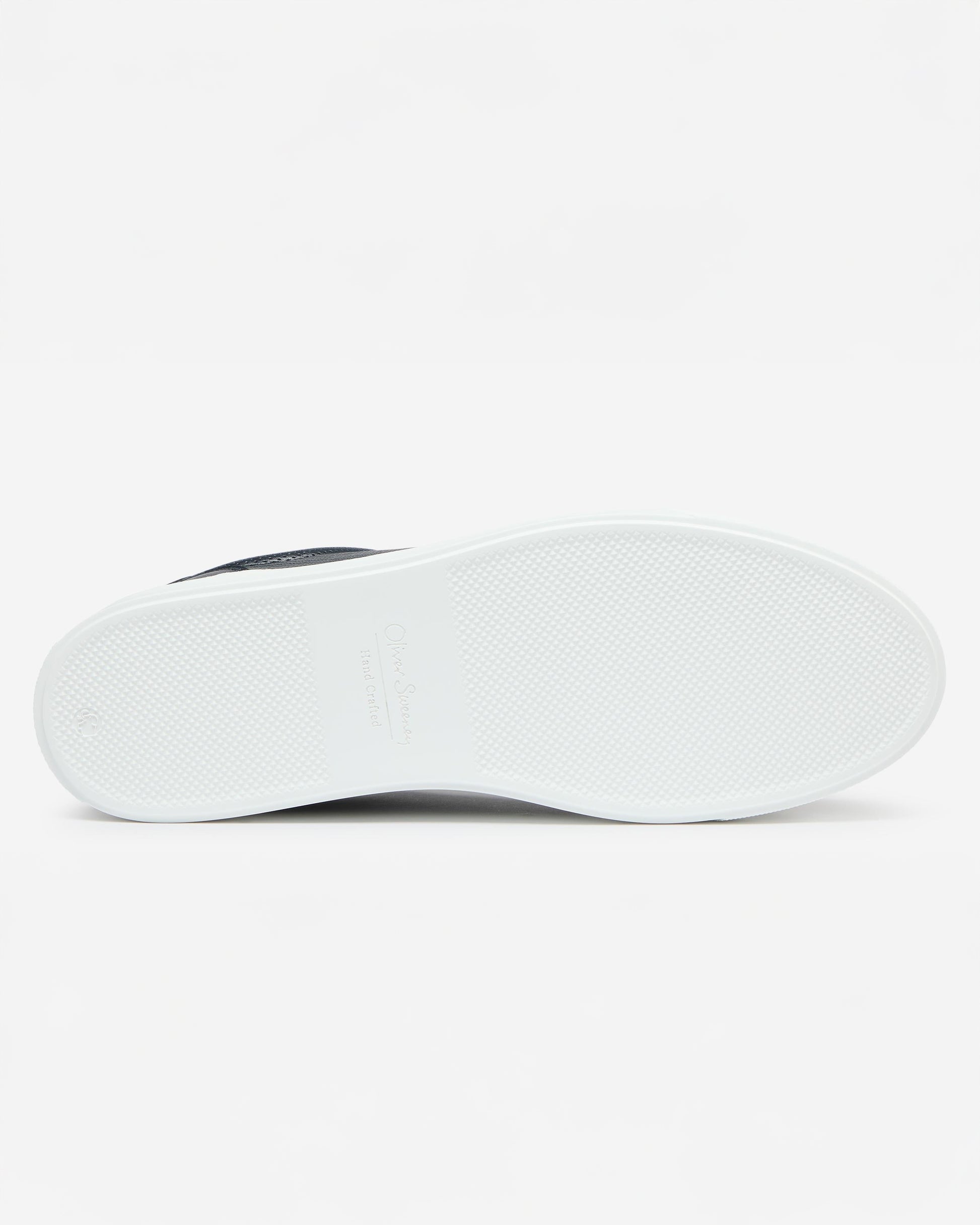 Drawing inspiration from our ever-popular Almada and Rende we have launched a new perforated lace free trainer Valezim. The upper has clean lines with a toecap and Saturday elastic for a secure flexible fit. The upper is a combination of smooth calf leather and perforated calf leather on the quarters in classic navy. We’ve included some light padding on the collar, a full leather lining with bagged topline and a leather insock. The upper is lasted in the traditional way and secured with a side stitch to a contrasting white cupsole, made from a lightweight EVA compound.